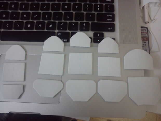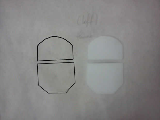 Ven en la imagen lo que debe buscar la plantilla de pulgar como cuando es terminado, perdona por favor mis habilidades de photoshop pobres. Fui por delante y trazó la forma del papel mantequilla en la espuma y recórtalo. Haces con todas las piezas.