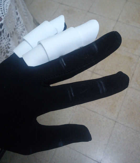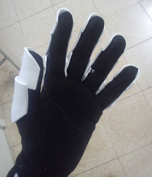 La forma que son el objetivo aquí es para las piezas de dedos sólo cubrir la parte exterior y no envolver completamente alrededor del dedo, pero como una concha. Esto se verá mejor y también será más fácil para construir y usar, ya que nuestro guante elástico hará todo el trabajo, como si la espuma es sólo como un accesorio, esto también evitará que la espuma se dañe fácilmente y usted será capaz de utilizar sus manos de esta manera, recoger cosas y trabajar y así sucesivamente. Así todavía que mantener las manos funcionando correctamente de esta manera.