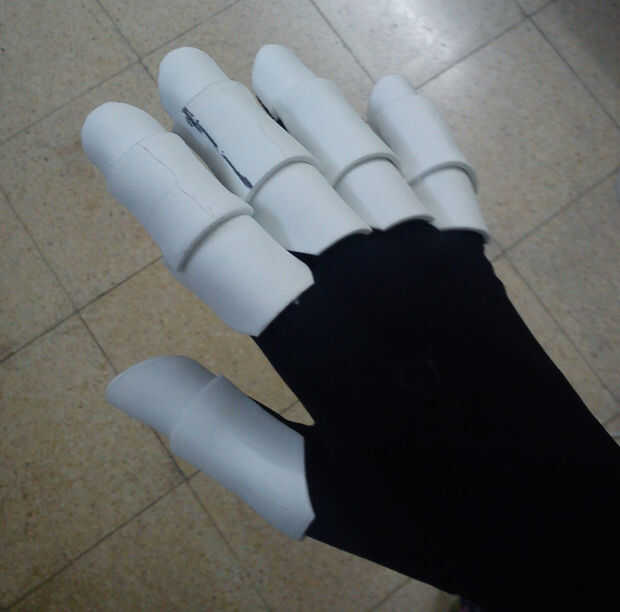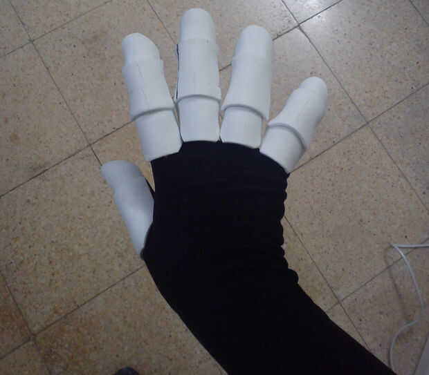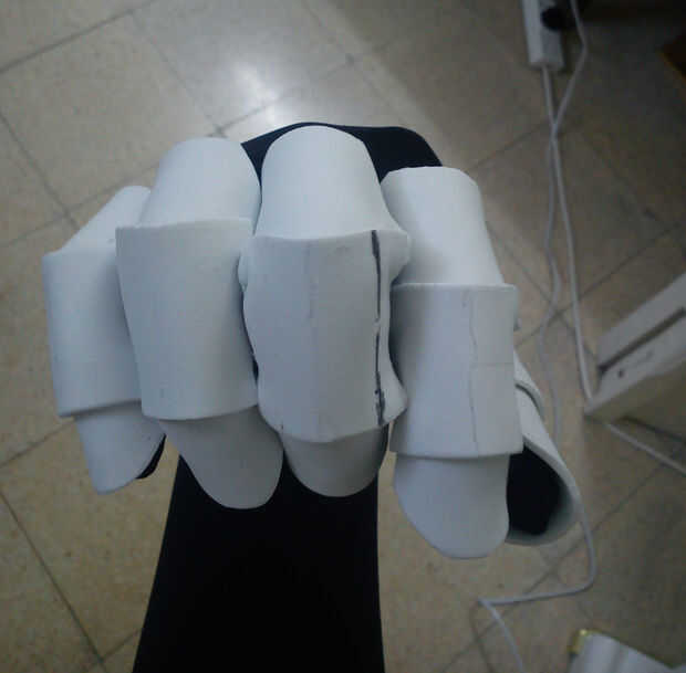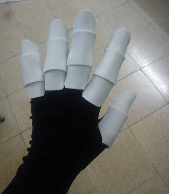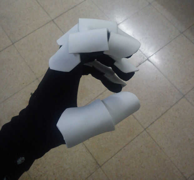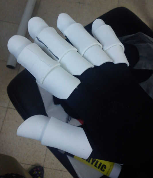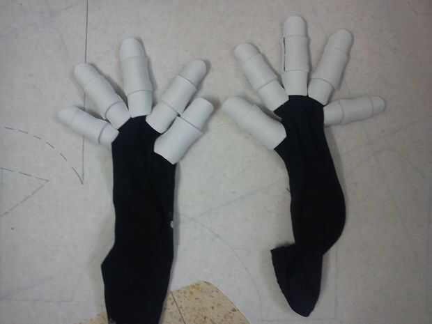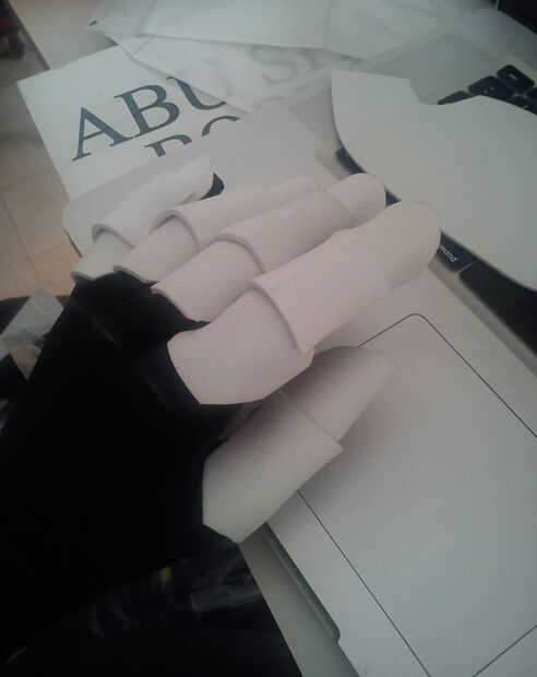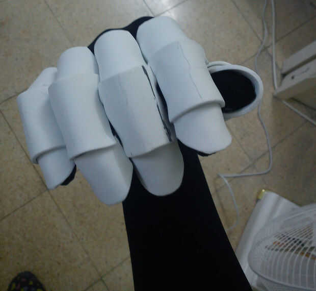 Al quitarse los guantes se nota cómo la espuma tomó la forma de los dedos, mirar la última foto, incluso con los dedos de ellos sigue manteniendo su forma y estructura, es porque la espuma cuando se calienta por el pegamento tomó la forma de los dedos, que era el molde en este caso. Parecen bastante segmentado salchichas ahora!
