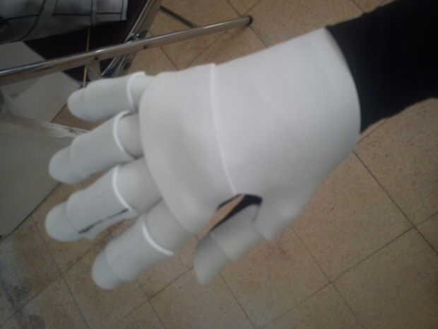 ¡ Excelente! Ahora que se acaba esta mano, tomar el guante cuando está seco y quite los vendajes en el caso de consiguieran pegados en el interior del guante base. ¿Ahora no se siente bonito?