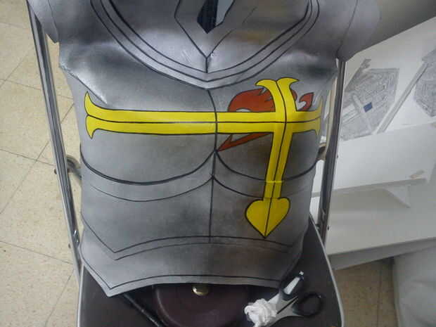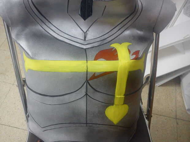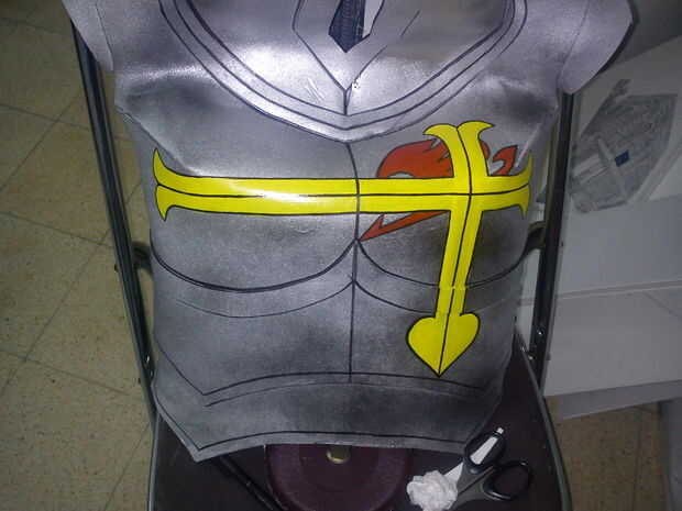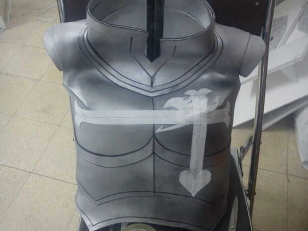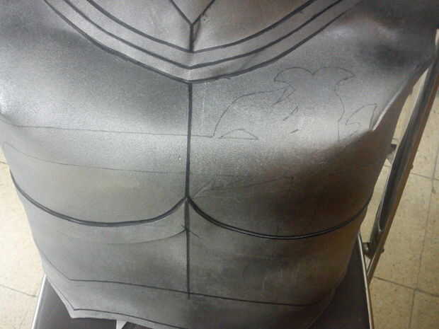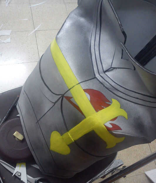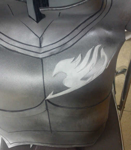 En primer lugar, te recomiendo dibujo el logo en papel luego cortarlo y rastreo en la armadura como un patrón, que es la opción más segura si usted no quiere el riesgo de arruinar la pintura de la armadura. Espuma tiene trazos de lápiz muy mal, ya que es muy suave y nada deja rastros permanentes en él. Fotos 3, 4, 5 mostrar ese proceso.