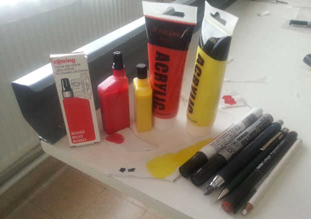 Empecé con el rojo. Usando tinta Rotring roja y un pincel, pintó directamente en la espuma coloreada, ya que lo que tenía era un color rojo brillante y estaba buscando de un color más oscuro, la espuma absorberá la tinta da un hermoso color rojo oscuro. Dar tantas capas como desee, cuanto más mejor, sólo ten cuidado, la tinta puede ser complicada, no lo dejas secar en su reloj, acabado pintura todo a la vez, de lo contrario tendras manchas feas y no quieres. Aunque este caso no es tan drástico en espuma ya que es en el papel, uno todavía debe ser muy cauteloso. Así que Tómese su tiempo con él si quieres que resulte perfecto.