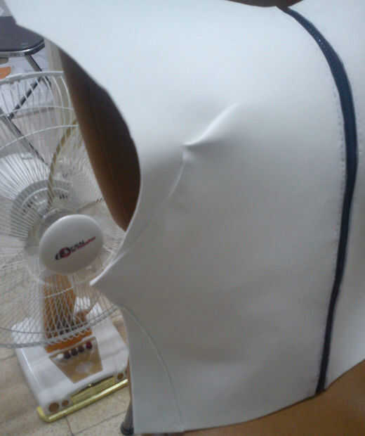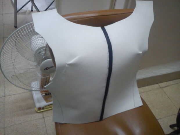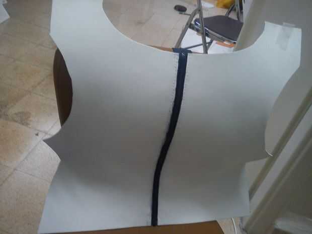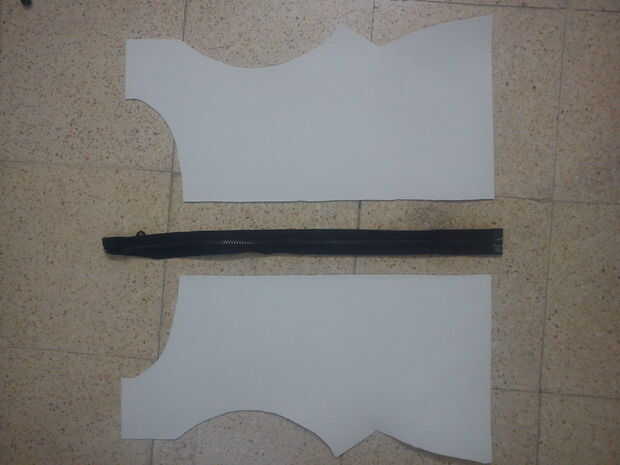 Lo siguiente es agregar la cremallera de la espalda, porque necesitamos una forma fácil y duradera simple ponerse y quitarse la armadura. Debe utilizar el tipo que se abre desde la parte inferior como los de chaquetas o camisas. (Si no encuentras una cremallera entonces encuentra una vieja chaqueta y quitar las costuras y se puede utilizar esa cremallera) También, un negro de la cremallera en el centro de la espalda es conveniente porque también funciona como parte del diseño de la armadura; Armadura de erza tiene una línea recta vertical por el centro de la espalda, así que hay que ir! Dos pájaros de un tiro!