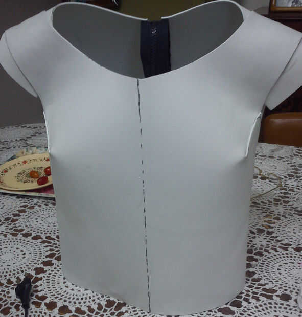 Debería verse algo así como esas fotos cuando esté terminado. Ahora no te preocupes el pecho mirando como ese plano, se solucionará cuando atribuimos el collar. En esto que hice el escote un poco demasiado ancho, que se remonta a la elaboración de la pieza, porque dibujé los hombros demasiado lejos desde el escote que a su vez se convirtió en demasiado grande por lo que terminó con un gran escote y, finalmente, un cuello ancho. Se puede evitar haciendo la línea de cuello pequeño, cuando empieces a dibujar tu propio patrón de cuerpo.