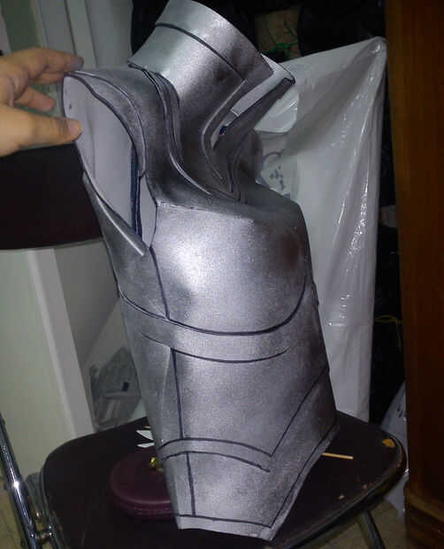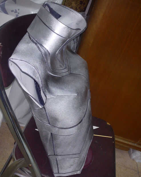Y ahora que sabes el gran secreto, ejercen sus marcadores negro y comenzar delineando cada línea, cada detalle en ese pedazo de pecho, en el grueso de la espuma, los bordes, todo! Se ven drásticamente diferente una vez que termines con él, pero lento y tenga cuidado, que no puede permitirse el lujo de cometer errores ahora porque una línea perdida sería fatal... Marcador negro es permanente y se arruinara el trabajo de pintura si sale mal.