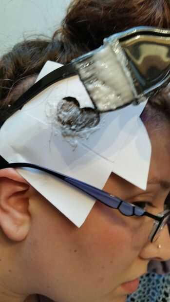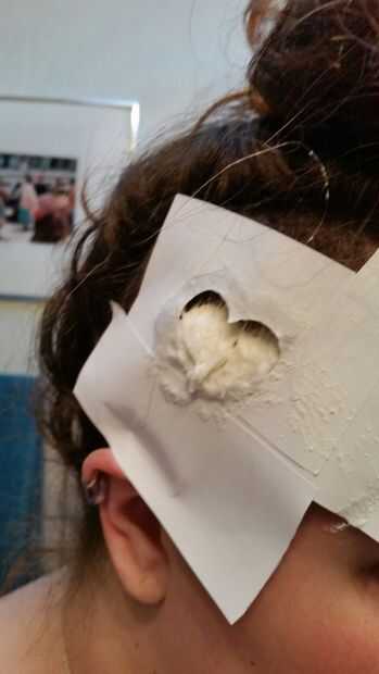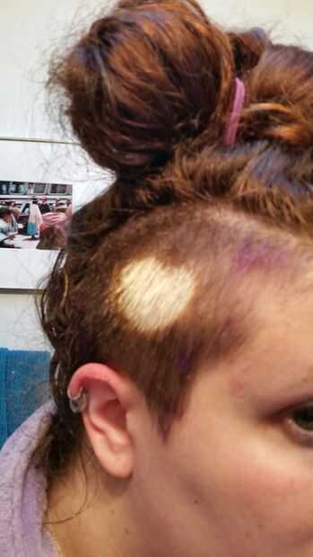 Mezclar el aclarador según las instrucciones en la caja, luego use el cepillo para aplicarlo al cabello a través de la plantilla. Lo deja encendido durante el tiempo especificado en el cuadro, luego retire la plantilla y enjuague el clarificante.