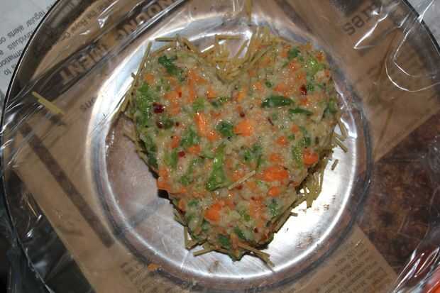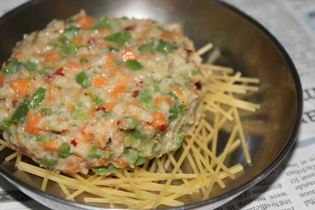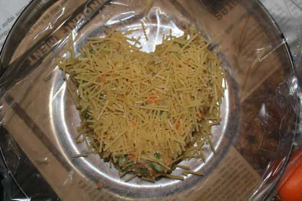 Sobre una superficie plana, extiende los espaguetis picado y extenderlo uniformemente.