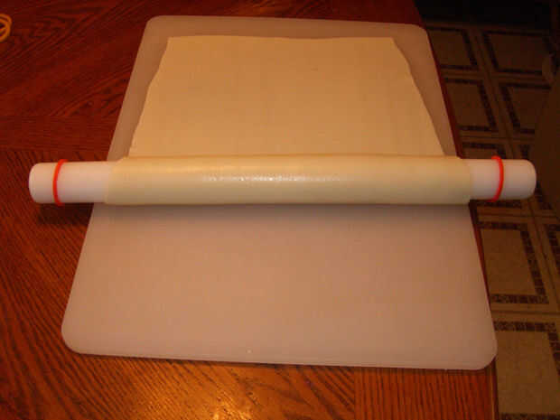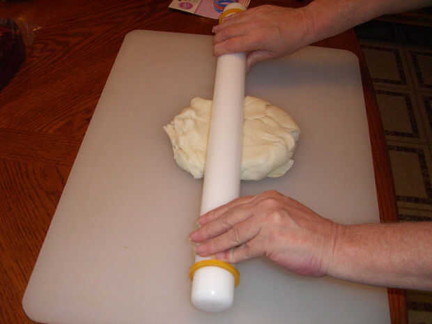 Colocar anillos de medición en el extremo de su rodillo y empezar trabajando el Fondant desde el centro hacia afuera en ambas direcciones.