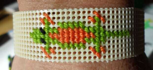 Este proyecto es bastante básico y no requiere de muchas fuentes.Fuentes:Cuenta de plástico lona tamaño 7 - una hoja de 10' x 13' debe estar bienHilo en los colores de su elección - usé amarillo pálido y un verde que obtuve de una venta de garajeAguj