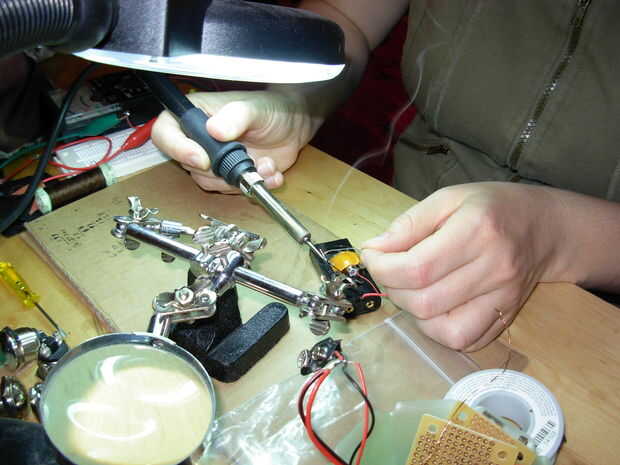 Desde que tenía dos juegos de cables, I un par trenzado juntos, les soldado y luego pega caliente para mayor seguridad.