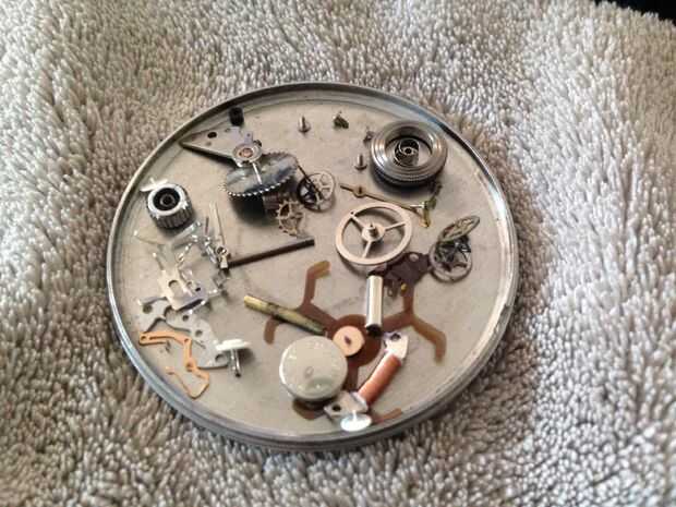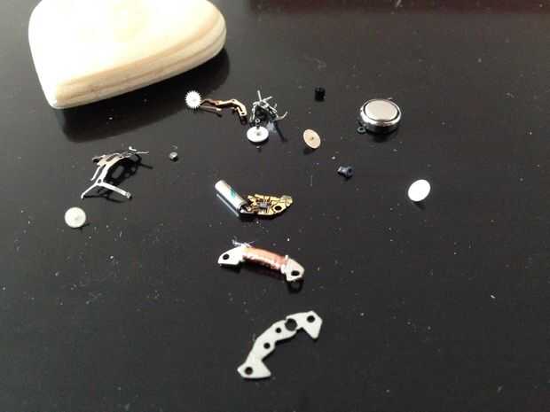 Una vez el reloj está desarmado, conservamos todas las piezas en un lugar seguro (para que no se pierdan)