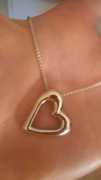 En primer lugar está puliendo. Desde que tenía la pieza rodio plateado, lo llevé a un pulidor/chapista profesional. Pulido, limpiado y rodio de la cadena y colgante de corazón. Galjanoplastia del rodio evita cualquier pérdida de lustre y unifica a las diferencias de color entre la plata de la cadena y el colgante. El proceso de la galjanoplastia fue completo, el collar era una brillante pieza acabada y lista para ser dada.