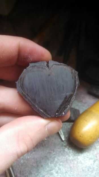 OK, así que una vez que el diseño está grabado sobre la superficie del bloque de cera, tiempo para cortarlo hacia fuera. Se trata de un corte áspero, recomiendo usar un bloque de cera mucho mayor de lo necesario si eres nuevo en esto. Permite suficiente espacio para el error y practicar con la herramienta. Para cortar la pieza hacia fuera, usé Sierra de mano de un joyero, con una lámina espiral de cera pesada. Luego trabajé mi camino alrededor de la forma con un primer corte ½ lima redonda para empezar. Luego presentar la curva de los bordes para hacer la forma contornos limpiarán y seguir a lo largo de mi diseño.