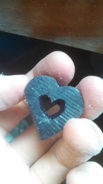 Diseñé mi corazón para tener un medio abierto. Quería quitar el centro de la pieza temprano en el proceso de conformación para asegurar que no forma a los bordes exteriores demasiado pequeños. Para quitar el centro, primero utilizar una broca y el eje de flexión. Uniformemente removido el centro todo alrededor con una fresa redonda, haciendo un agujero lo suficientemente grande como para adaptarse a mis archivos en. Este agujero es mucho menor de lo que será una vez que haya terminado. Prefiero tener un montón de espacio de trabajo.