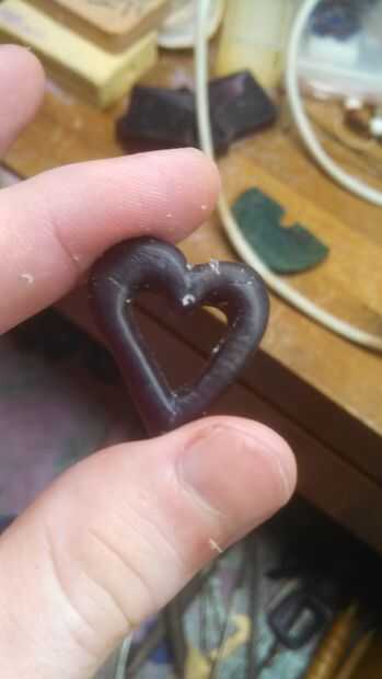 Ahora usando una gama de archivos y hojas más graves, he trabajado mi manera alrededor del corazón que se forma al tamaño deseado y curvatura. He trabajado el interior y exterior para evitar que el corazón se para adelgazar en ciertos lugares. Quería que la cadena pase por el corazón, así que seguí uno de los rincones bastante grande y voluminoso para perforar un agujero.