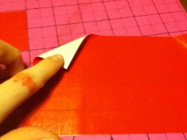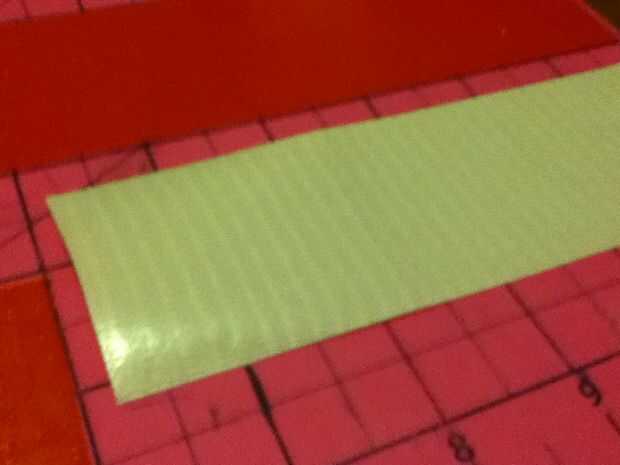 3. tomar una de las tiras y dale la vuelta para que ver el lado pegajoso.