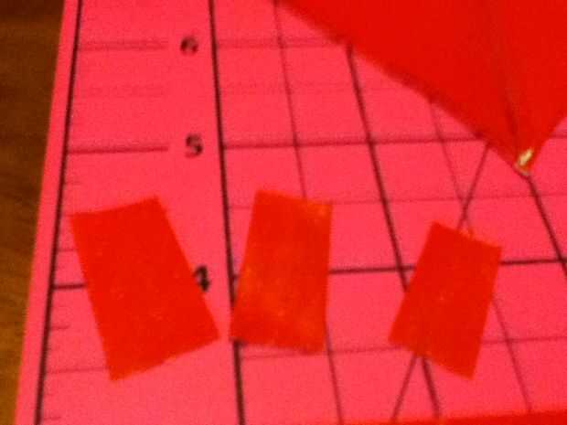 3. corte de las tiras en incriments 1/2 pulgada. Debe tener 1 pulgada por 1/2 pulgadas piezas.