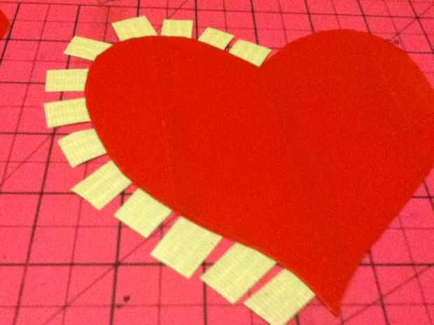 1. pila de los dos corazones y poner los trocitos alrededor del borde de los dos como hice yo.