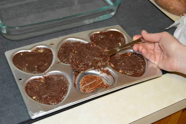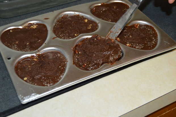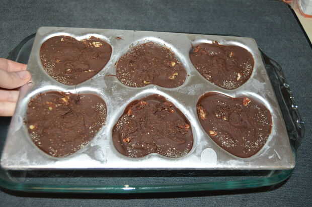 Retiro iba a ser un experimento, la mantequilla sí mismo no fue suficiente para liberar a los chocolates de los moldes. Después de hablar con mi esposa, ella sugiere ayudaría a un baño de agua caliente, y lo hizo. Hizo sólo pop justo hacia fuera el chocolate. Desea colocar en el baño de agua caliente por algunos segundos aflojar simplemente mantenga el chocolate sobre la bandeja. Sólo asegúrese de no tener en mucho tiempo o se derretirán hacia abajo. Si quieres las tapas más liso que ripply de quitarlas, asegúrese de suavizar el chocolate derretido antes de que se enfría y se endurece.