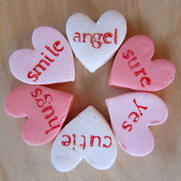 Me sorprendió que el sabor y la textura era casi idéntico de los tienda compraron dulces corazones. Hice mi corazón un poco más grande que lo real para ahorrar algo de cordura y tiempo! Son cada uno del tamaño de un cuarto.