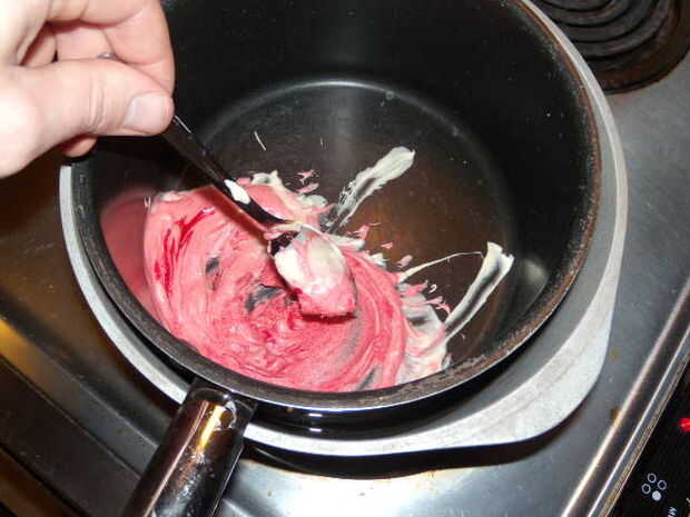 Coloque el resto de su chocolate en la olla. Espere uno o dos minutos. Cuando las fichas se convierten en brillantes son probablemente listos aunque han mantenido su forma. Les revuelva un poco para convertir el chocolate en una pasta.