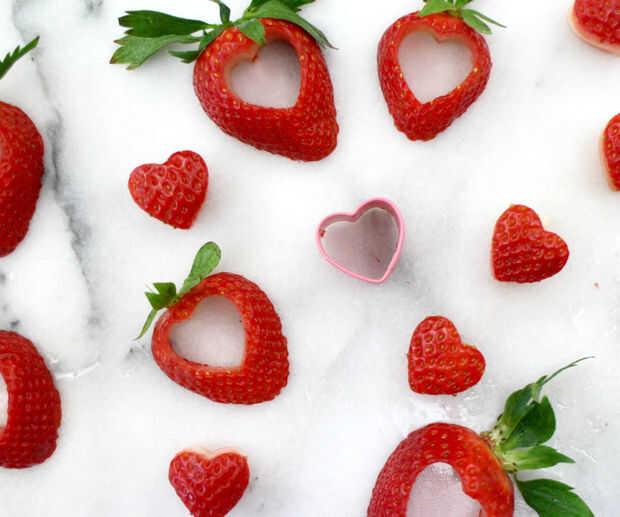 Corazones de fresa para añadir a postres de San Valentín, es súper fácil y una gran manera de añadir un toque de rojo color amor. Como se verá en los próximos pasos, el centro y el exterior puede utilizarse para fines muy deliciosos.
