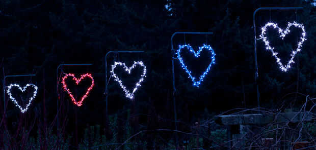 cada febrero siento triste como mi papá y mis cumpleaños hacia atrás este mes. Nunca conocí a mi papá creciendo, por lo tanto, la tristeza. Un año que decidí hacer algo alegre para mi papá y para mí. He creado un centro de memoria como un regalo para él. Ahora os cuelgo los cada febrero. La gente les encanta. Tráfico conduce más despacio en mi calle. Gente de toot sus cuernos. He tenido notas dejadas por mi puerta expresando gratitud por el corazón. Completos extraños nos reconocen hacia fuera en público como la gente con el corazón. Ha sido muy divertido.