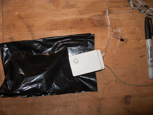 Cortar un rectángulo de la doble capa de la bolsa de basura que mide 8 pulgadas por 16 pulgadas.