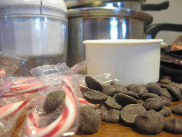 2 1/2 tazas (si tu todos los bastones de caramelo mini entonces utilice 3 tazas) chispas de chocolate (me gustaría probar las obleas de chocolate)