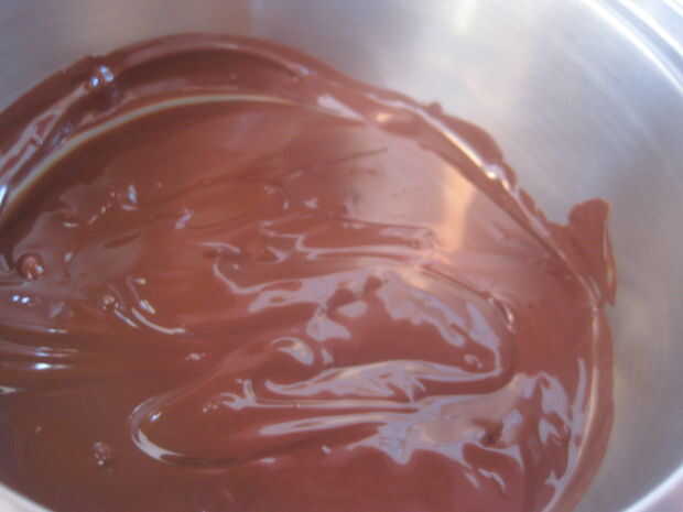 y vierta un poco del bastón de caramelo triturado en el chocolate