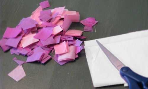La configuración es bastante simple para este arte. Todo el papel de tejido debe ser cortado en cuadrados en cualquier lugar alrededor de 1 pulgada por 1 pulgada de tamaño. No hay necesidad para hacer los cuadrados en perfecto ángulo de 90 grados, pero en su lugar hacer el proyecto más interesante y texturizado con plazas deformes.