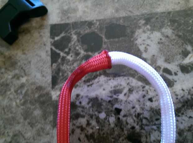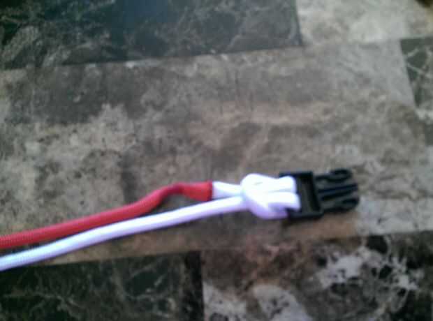 Se unen a los dos colores de paracord. Existen diversos métodos para ello. En esta pulsera los extremos fundidos no se verá en los nudos.
