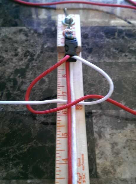 1. cruzar el cordón rojo sobre la base de salida de un bucle y en el cordón blanco.