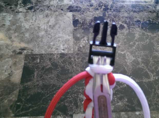 Utilice las pinzas para tirar de los extremos sueltos del cordón a través de este lazo y tire firmemente.