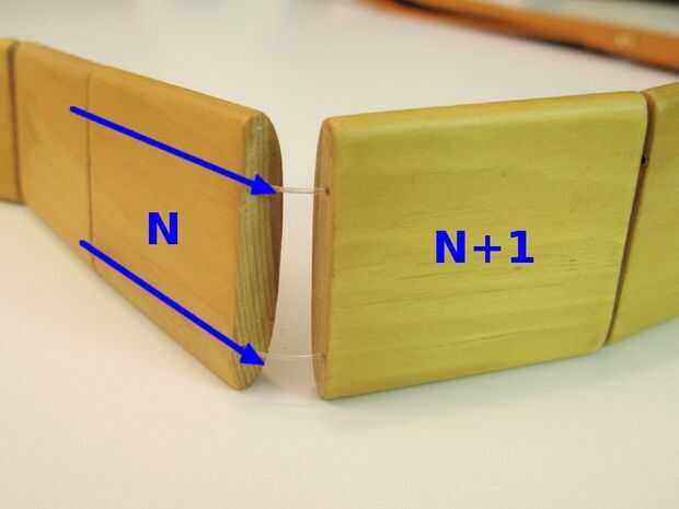 Después perforó el pedazo número N, alinear la TI con la pieza siguiente (N + 1), deslice la aguja por los agujeros de N, para marcar precisamente la posición de los agujeros en N + 1.