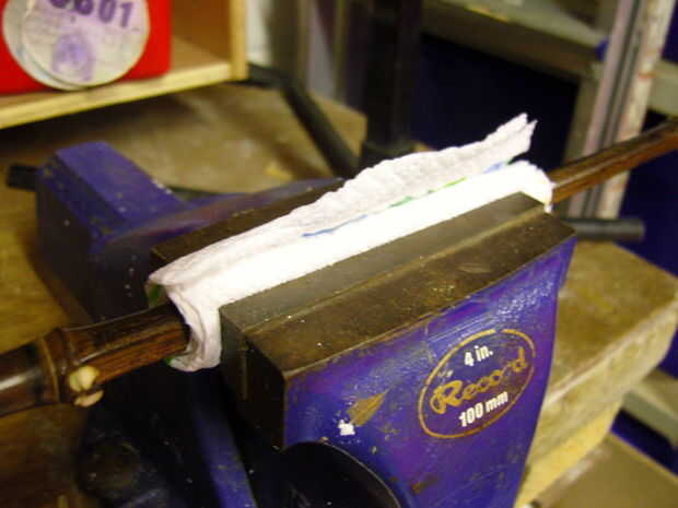 Envuelva el bambú en un tejido o paño para no daña la abrazadera.