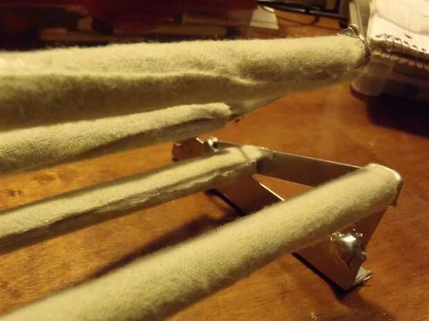 Finalmente, envuelva fuertemente el material alrededor de la varilla. Luego pegar la parte interior del dobladillo de cinta de conducto el material o una cinta por debajo de ella para mantener el rodillo en su lugar. A partir de los trabajos mediados bien, sólo mantenerla apretada y uniforme.