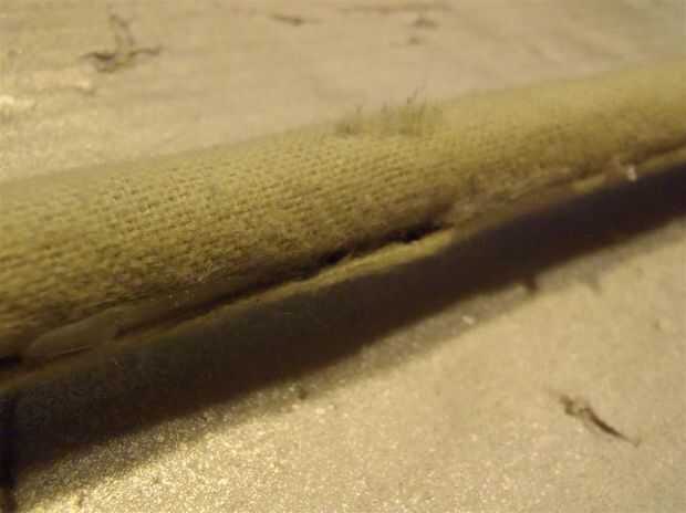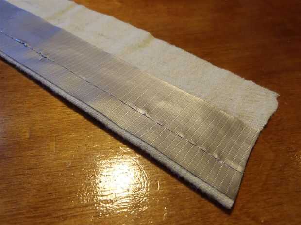 En primer lugar, medir cuatro piezas de material (o fieltro, terciopelo, o lo que quieras) un coupe de pulgadas de largo y tan ancho como su dalrods. Luego, doblar un borde hacia atrás y cinta de nuevo a sí mismo. Esto es cómo usted dobladillo material sin coser!