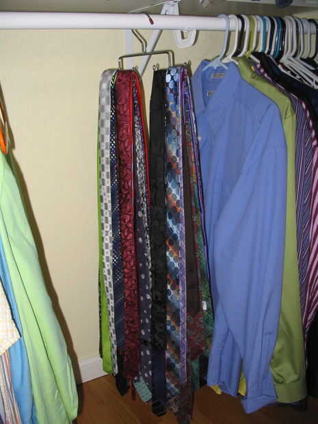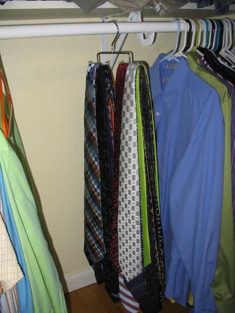 Este vertical colgante corbatero realmente no puede manejar tantos lazos como peldaños. Las relaciones terminan todos apilados uno encima del otro y es imposible de encontrar. Además, al final de un agotador viernes Formal, simplemente no tengo la energía para volver a poner un lazo en su peldaño. Siempre terminaba en la parte superior.