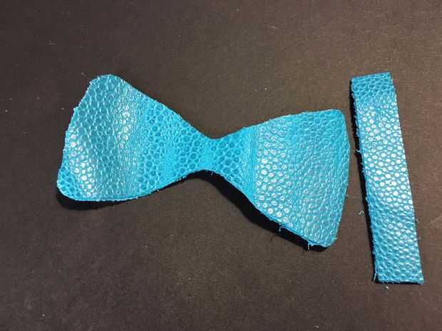 Recortar el diseño de la pieza de cuero. También corte una tira pequeña y fina para envolver alrededor del centro del arco.