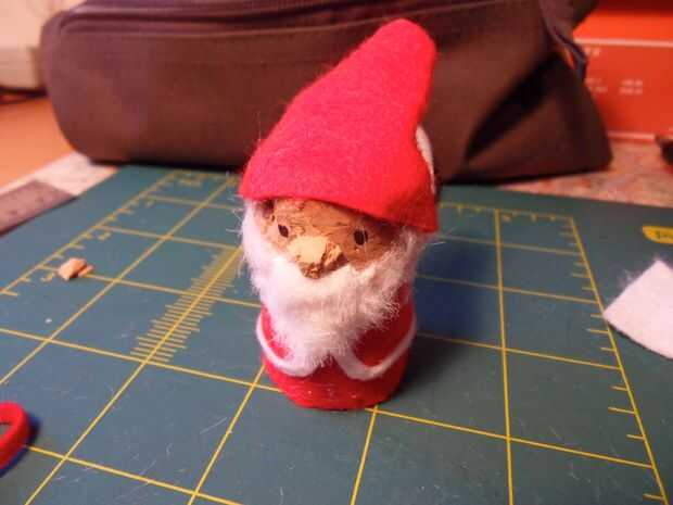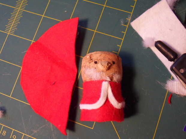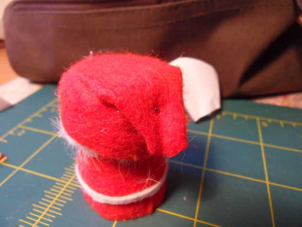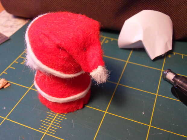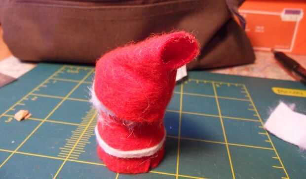 El sombrero es realmente sólo un cono de fieltro, plegado en la parte posterior. Podría ayudar si no cierra la punta totalmente, así que usted puede agregar lo bola esponjosa.