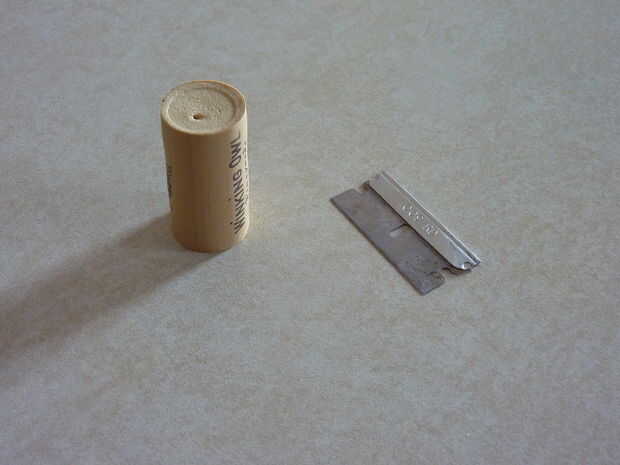 Para empezar, sólo necesita un corcho sintético del vino y una hoja de afeitar u otro utensilio de cortar - más fino será el mejor.