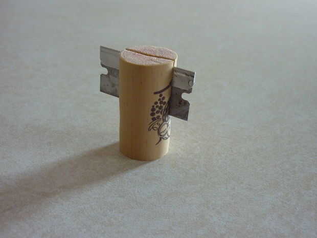 a continuación, cortar el corcho en medio lo largo cerca de dos tercios del camino a través.