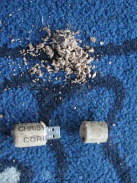 ADVERTENCIA: vaciamiento de corcho es peligroso es cuchillo corta a través de corcho. Algunas pistolas de pegamento caliente pueden estar muy calientes y pueden dañar tu memoria USB. No soy responsable de los daños y perjuicios (a usted o a su USB).