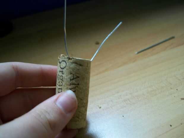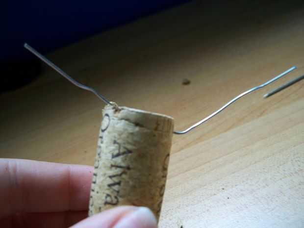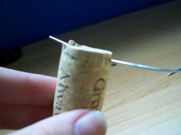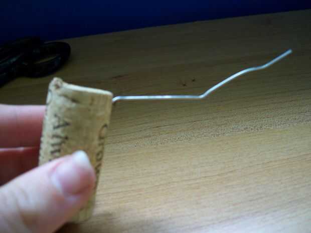 Clips de papel son la longitud perfecta para sujetar el encanto del cristal. Todo lo que tienes que hacer es desplegar su clip y deslícelo a través del orificio que hiciste en tu corcho. Doblar los extremos para arriba o un) como él lo es y desea mantenerlo de esa manera, o b) está listo para el siguiente paso!