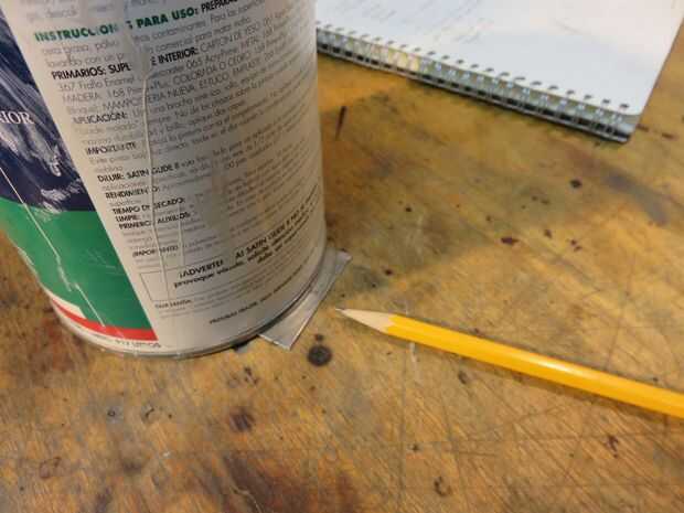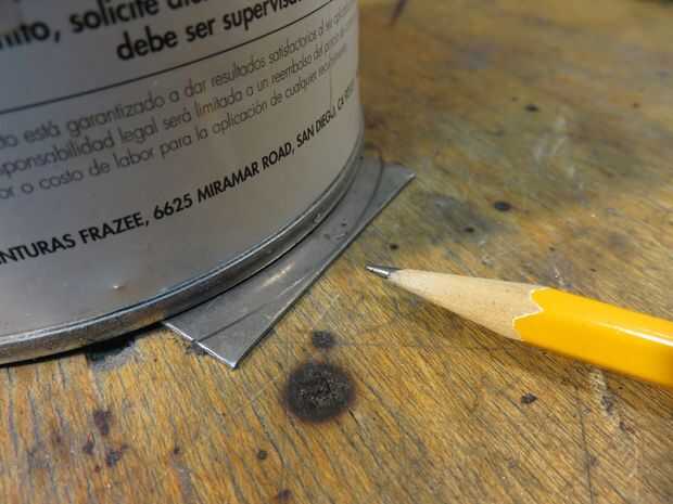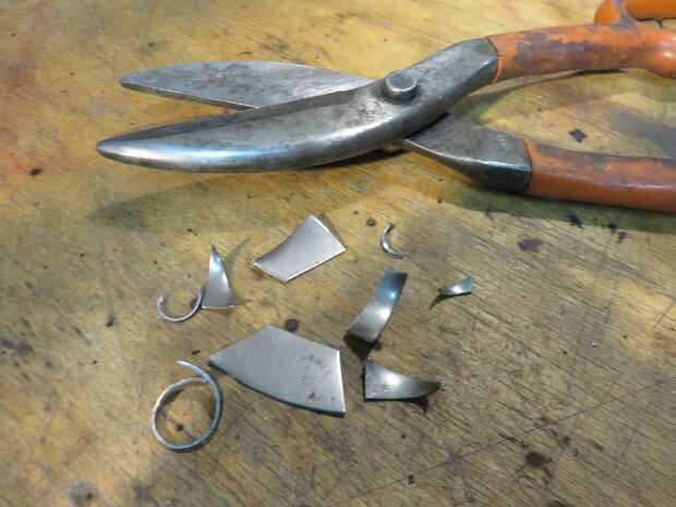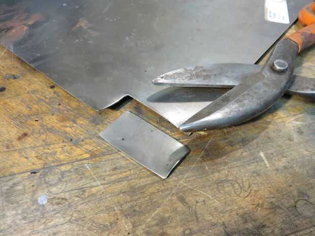 No hay mediciones aquí! Apenas corté el acero hasta que pensé que se veía bien. Después de cortar un rectángulo, había trazado un arco con la ayuda de una lata de pintura. Desde allí solía metal tijeras para recortar el cuerpo del cangrejo a la forma.