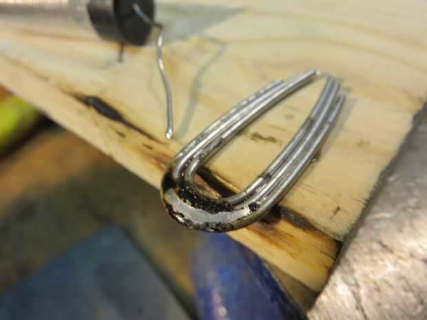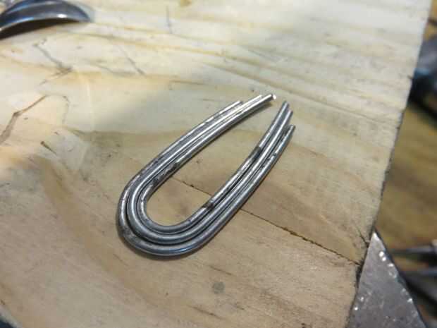 Las piernas están hechas de bucles concéntricos de alambre como aprecia en el cuadro 3. Usé diferentes tomas tamaño para hacer esto. Yo los alineados y los soldados juntos.