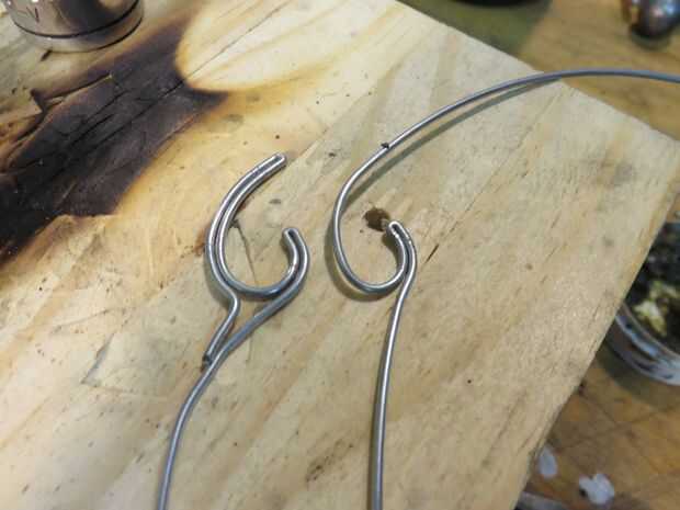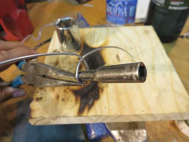 Hice las garras formando una sección de alambre alrededor de una gran toma. Entonces tomé un enchufe más pequeño y había hecho un lazo pequeño en la misma sección de cable. Usé los alicates de punta de cono para doblar el alambre alrededor, rastreando lo que ya se formó.