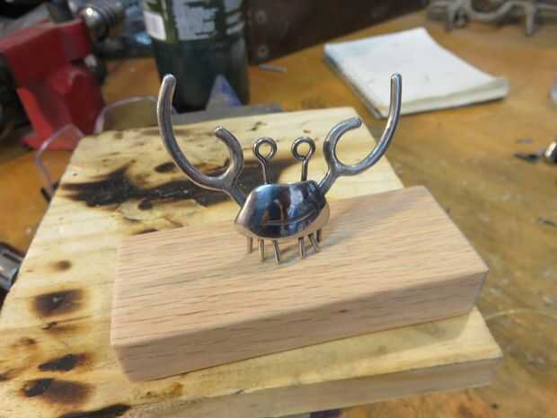 He puesto el vinilo adhesivo antideslizante en la parte inferior de la madera. Esto ayuda a estable. Por último, yo había colocado mi pequeño cangrejo en mi mesita de noche.