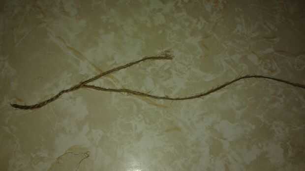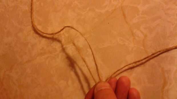 Luego tomar la guita afuera y torcer así su balanceo hacia usted. Una vez que tengas un buen apretado giro rodillo la cuerda recién torcida y la guita sin torsión juntos para que la recta va encima y el trenzado va bajo. Esto es un rollo 180 así dentro de la guita al exterior.